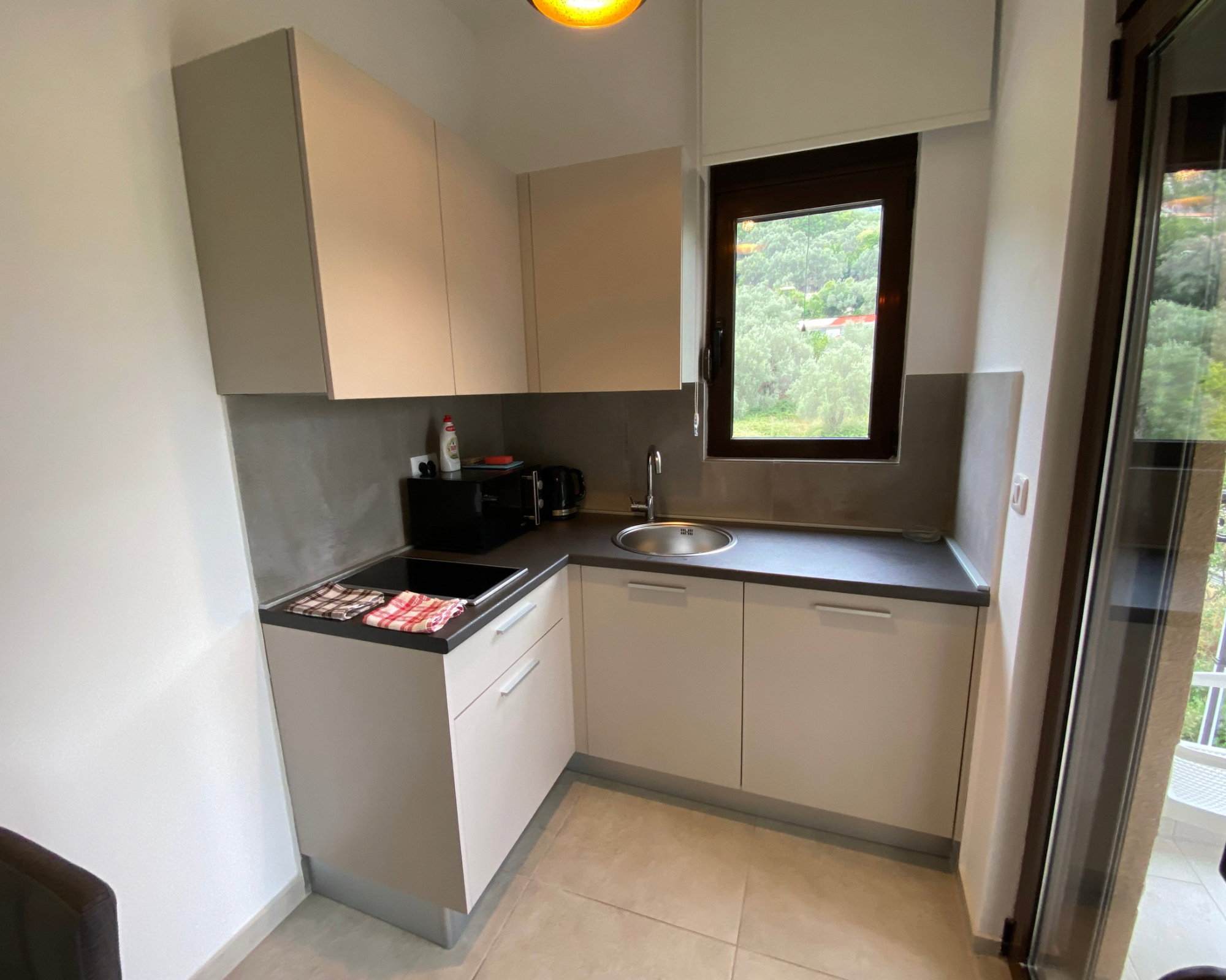 Jedes Apartment hat eine moderne Kochnische. Auf dem Hotelterritorium gibt es zwei Pools, eine Sauna, ein Yogaplatz.