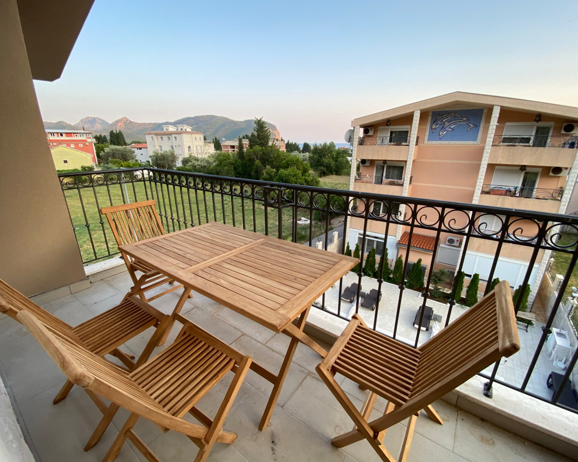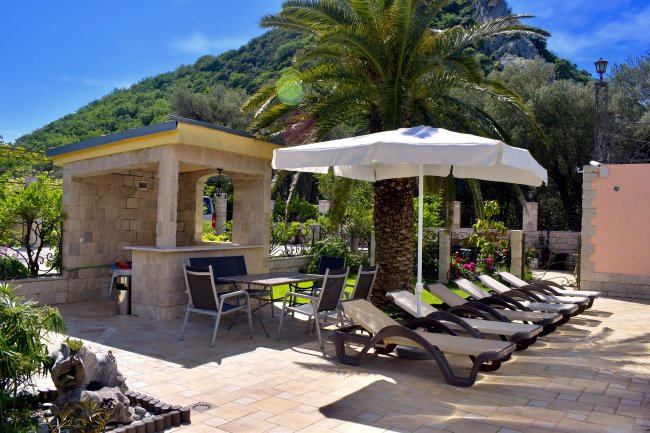 Unser Aparthotel bietet moderne, komfortable Apartments mit Blick auf die Berge oder das Meer, Liegen, einen überdachten Pool (in dem man bei jedem Wetter schwimmen kann), ausgestattete Grillplätze, kostenlosen Parkplatz, Kinderspielplatz, Waschmaschine und europäischen Service. Das Aparthotel ist auf einen ruhigen Familienurlaub oder einen Aufenthalt in kleiner Gesellschaft ausgerichtet.